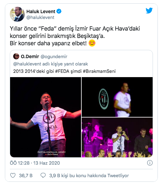 Kurduğu AHBAP derneği ile yardıma ihtiyacı olan ailelere yardım eli uzatan Haluk Levent ise, Beşiktaş kulübünün kampanyasına konser desteği vereceğini açıkladı.