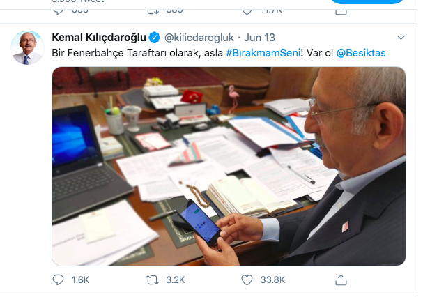Siyasetin önde gelen isimleri de Beşiktaş’ın Bırakmam kampanyasına katıldı. CHP Genel Başkanı Kemal Kılıçdaroğlu mesajında “Bir Fenerbahçe taraftarı olarak, asla BırakmamSeni! Var ol Beşiktaş” mesajı yayınladı. İstanbul Büyükşehir Belediye Başkanı Ekrem İmamoğlu, Muharrem İnce, Dr. Kerem Kınık, Prof. Dr. Ümit Özdağ, Tuncay Özkan, Prof. Dr. Vefik Arıca da kampanyaya destek veren isimler arasında yer aldı.