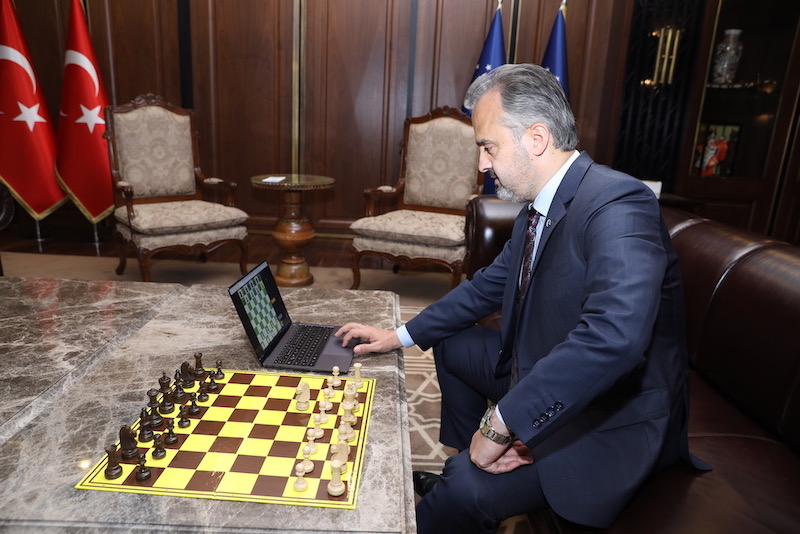 Bursa Büyükşehir Belediyespor Kulübü tarafından düzenlenen Çevrimiçi Satranç Turnuvası, Bursa Büyükşehir Belediye Başkanı Alinur Aktaş’ın ilk hamlesiyle başladı.